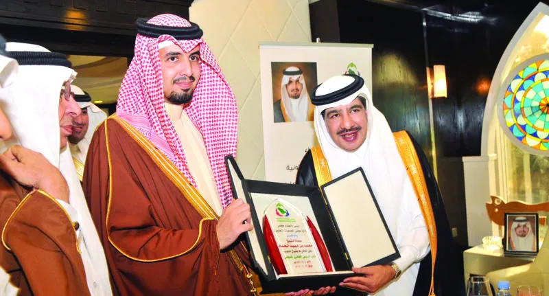 الأمير سعود بن سلمان يسلم الحماد درع تكريمه لقبول منصب نائب الرئيس الفخري ({الشرق الأوسط})