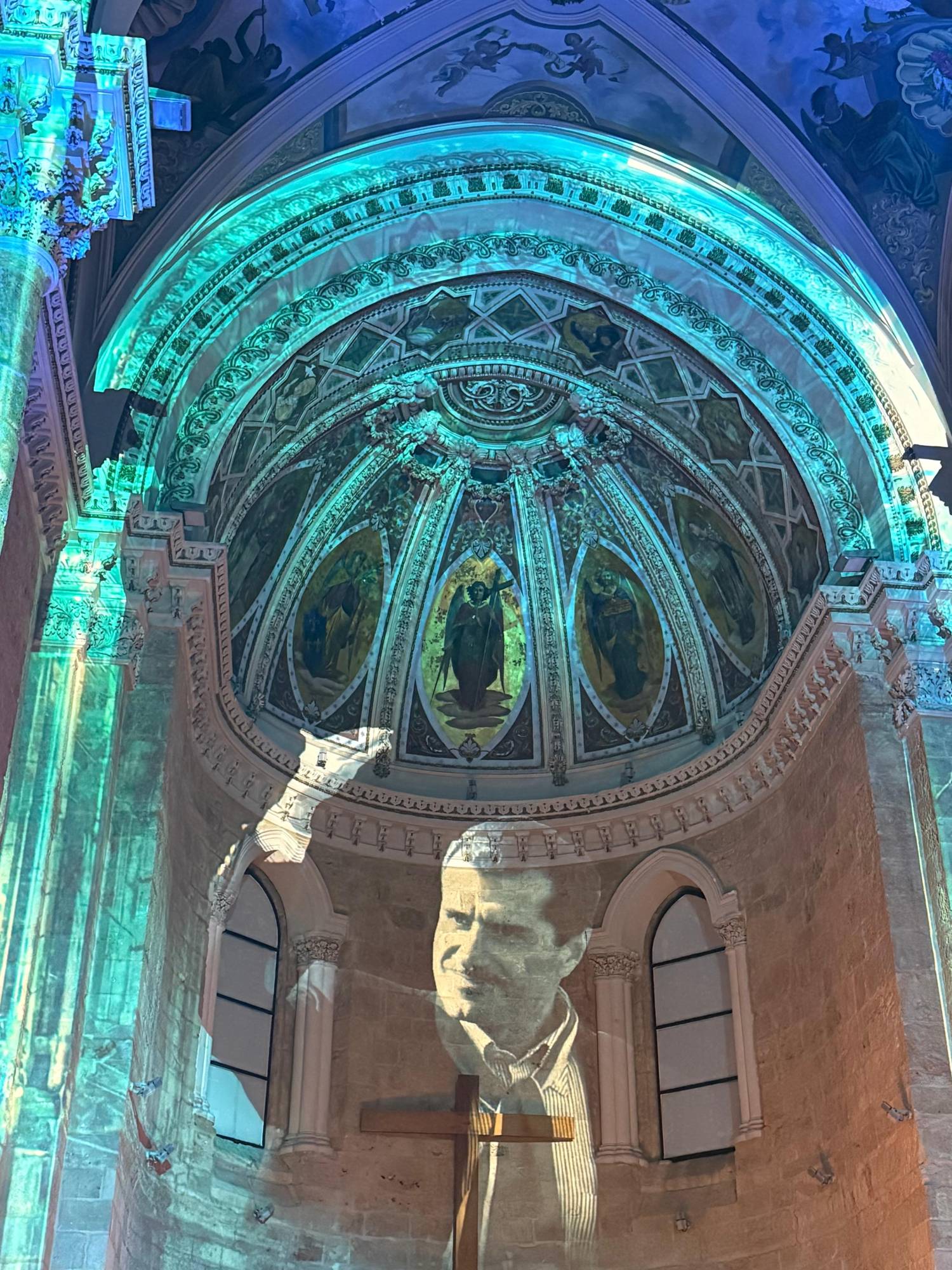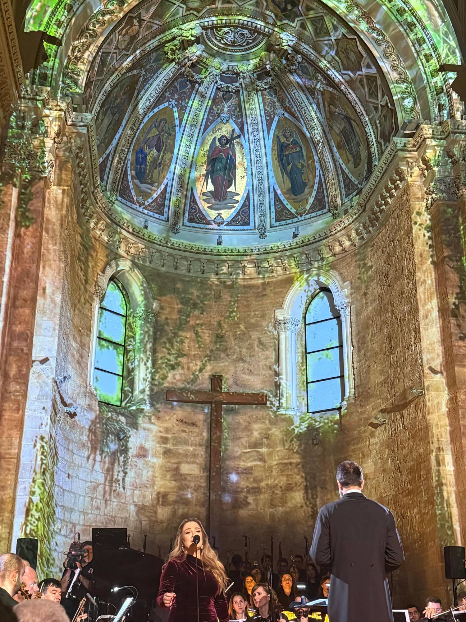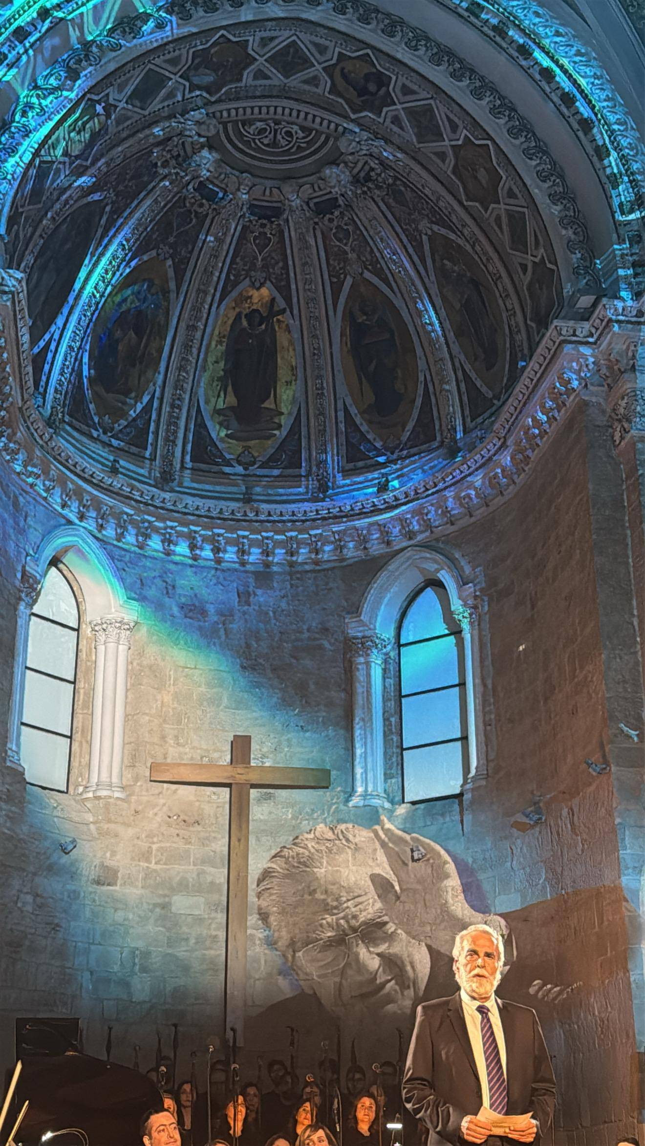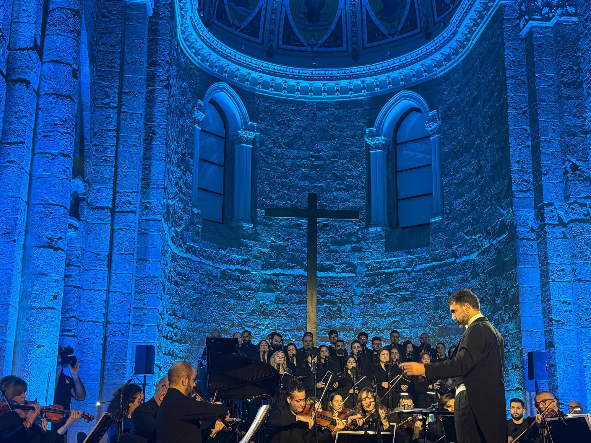 ثم سلَّم المايسترو لبنان بعلبكي الأمسية للموسيقى. جوقة جامعة «سيدة اللويزة»، التي يرأسها الأب خليل رحمة، وقفت خلف الأوركسترا، فيما الإضاءة تتبدَّل على الحجارة. تردَّد صوت جبران في الكنيسة... أحاديثه عن الحرّية، «قَسَمه» الشهير، لقطاته، ثم قراءة قصائد ناديا تويني بصوت جوليا قصّار. كانت نصوص الأم التي فقدت عائلتها تُقرأ فوق جدران شهدت تاريخاً آخر. الكلمات التي كتبتها عن الموت والوطن شكَّلت تذكيراً بأنّ اللغة أحياناً هي السلاح الوحيد المُتاح.