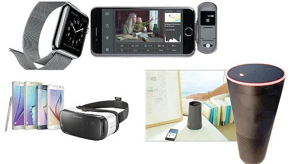 - «أمازون إيكو» Amazon Echo جهاز «أليكسا»، المساعد الصوتي داخل جهاز أمازون إيكو، وثب وثبات كبيرة. يبلغ طول أمازون إكو 9 بوصات وربع البوصة، وهو عبارة عن سماعة تعمل بتقنية البلوتوث تشبه الأسطوانة في الشكل أو الملصق الصغير الحجم الملتف حول ذاته، والذي يستجيب لأوامرك الصوتية وينقل الأخبار، ونتائج المباريات، وحالة الطقس، أو يتولى قائمة المهام الخاصة بك.