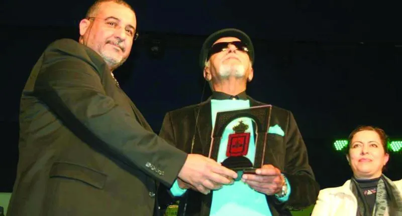 عازف العود الكفيف عبد اللطيف البياتي خلال تكريمه ({الشرق الأوسط})