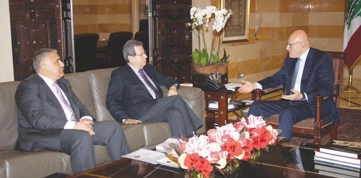 رئيس الوزراء اللبناني تمام سلام أثناء لقائه النائب عن تيار الوطني الحر نبيل نقولا (دلاتي ونهرا)