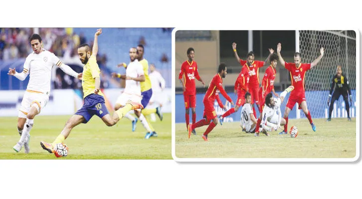من المواجهة التي جمعت القادسية وهجر (تصوير: عيسى الدبيسي)، من مباراة الشباب والنصر أمس في دوري المحترفين (تصوير: عبدالعزيز النومان)