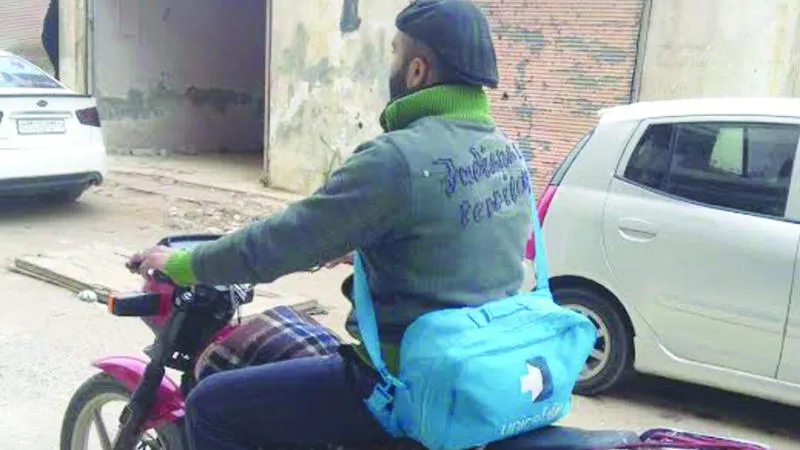 يتنقل على دراجة نارية حاملاً حقيبة طبية