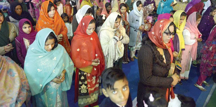 مسيحيو باكستان يحضرون صلاة أعياد الميلاد في كاتدرائية بلاهور أمس (أ.ف.ب)