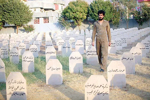 مواطن عراقي كردي يزور مقبرة مخصصة لضحايا مدينة حلبجة التي تعرضت لهجوم بالاسلحة الكيماوية عام 1988 (رويترز)