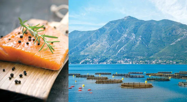 ولأن السلمون يعتمد على الأسماك الأخرى في غذائه فإن مزارع السلمون تستهلك كميات كبيرة من الأسماك التي تقدم غذاء للسلمون مما يهدد البيئة المستدامة لأسماك بعض المناطق. وتلجأ بعض مزارع السلمون إلى تقديم بروتينات نباتية كبديل للأسماك الصغيرة مما يجعل القيمة الغذائية لسلمون المزارع أقل من القيمة في الأسماك البرية الحرة، خصوصا في عناصر «أوميغا 3». كذلك تنتشر بعض الفطريات في سلمون المزارع بسبب المساحة المحدودة التي تعيش فيها الأسماك.
