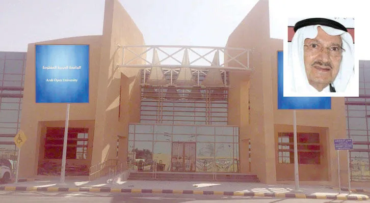 مقر فرع الجامعة العربية المفتوحة في السعودية التي بدأت بفكرة طرحتها {الشرق الأوسط} لتتحول إلى مشروع عربي للتعليم .. وفي الإطار الأمير طلال بن عبد العزيز رئيس مجلس أمناء الجامعة