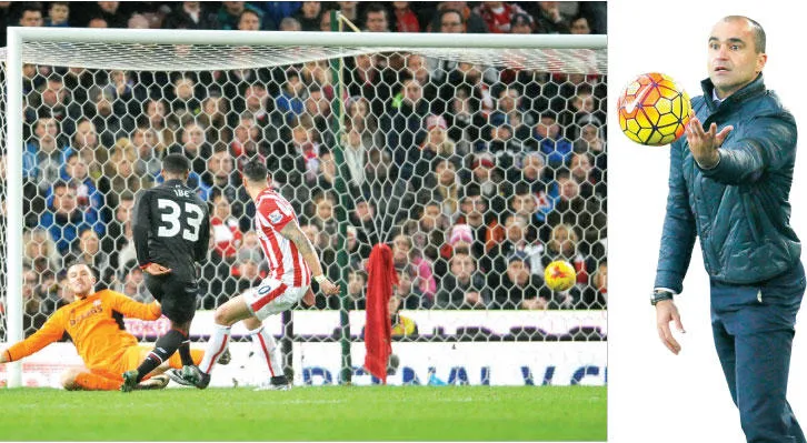 مارتينيز مدرب إيفرتون (رويترز)، غوردون أيب لاعب ليفربول يسجل في شباك ستوك هدف الفوز في ذهاب قبل النهائي (أ.ب)