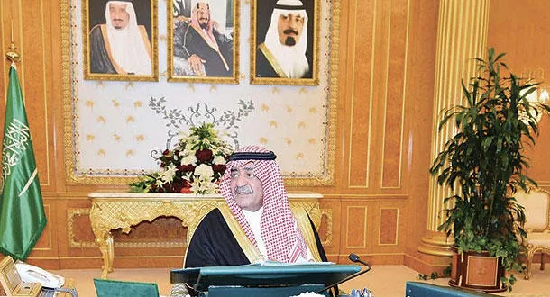 الأمير مقرن بن عبد العزيز لدى ترؤسه جلسة مجلس الوزراء التي عقدت بالرياض أمس (واس)