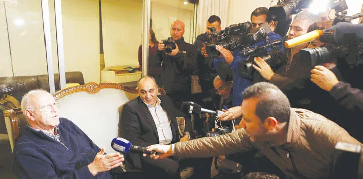 الوزير السابق ميشال سماحة يتحدث للصحافيين بعد إطلاق سراحه من قبل المحكمة العسكرية في بيروت (رويترز)