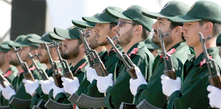 عناصر من الحرس الثوري الايراني لدى مشاركتهم في عرض عسكري بطهران إحياءً للذكرى السنوية لانطلاق حرب الـ8 سنوات ضد العراق (غيتي)