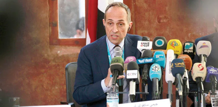ممثل اليونيسيف جوليان هارنيس خلال مؤتمر صحافي له في صنعاء (أ.ف.ب)