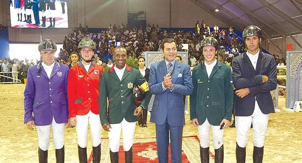 وكانت منافسات الجائزة الكبرى للعاهل المغربي الملك محمد السادس، آخر ما اختتمت به الدورة السادسة لمعرض الفرس، برسم المرحلة الثالثة والأخيرة من النسخة الرابعة للدوري المغربي الملكي الدولي للقفز على الحواجز، التي احتضنتها حلبة «للا مليكة» بالجديدة على مدى ثلاثة أيام، حيث ظفر بالفوز الفارس السعودي عبد الله وليد الشربتلي رفقة الفرس «إيكسكلوزيف» في أعقاب الجولة الثانية التي عرفت مشاركة 12 فارسا، وسلم له الجائزة الأمير مولاي رشيد، فيما عادت المراكز الأربعة الموالية (على التوالي) للإيطالي روبيرتو أريولي ممتطيا «فيبير»، والسويسرية باشلير راشيل رفقة الفرس «شيري بوسلوندوف»، والمغربي عبد الكبير ودار صحبة الفرس «كويكلي دي كريسكير»، والإيطالي روبيرتو توركيتو ممتطيا «باريتو»، كما سلم الأمير جائزة النسخة الرابعة للدوري المغربي الملكي الدولي 2013 للقفز على الحواجز، للفارس المغربي عبد الكبير ودار.