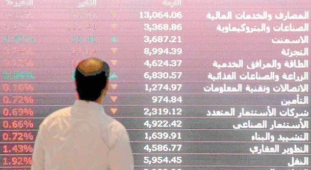 أنهت سوق الأسهم السعودية تداولات يوم أمس على انخفاضات حادة بلغ حجمها نحو 172 نقطة (رويترز)