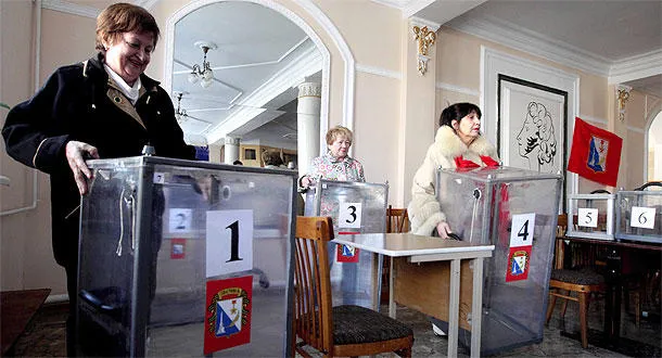 وفي سيمفيروبول، عاصمة القرم، صب «رئيس الوزراء» سيرغي اكسيونوف الزيت على النار بدعوته الناطقين باللغة الروسية إلى الاقتداء به وتنظيم استفتاءات للمطالبة بإلحاقهم بروسيا.