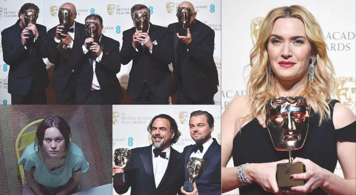 كايت وينسلت فازت بأفضل ممثلة مساندة عن «ستيف جوبس» (إ.ب.أ) - الفائزون بجائزة بافتا (أ.ف.ب) - ليوناردو ديكابريو مع المخرج أليخاندرو غونزاليس (أ.ف.ب) - بري لارسون الفائزة بأفضل ممثلة عن «غرفة» (أ.ف.ب)