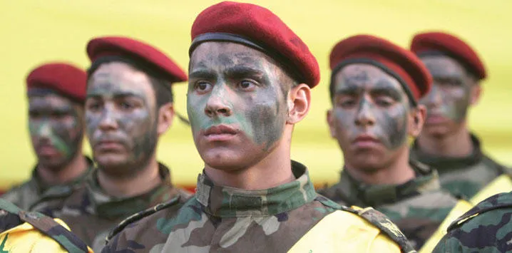 أفراد من «حزب الله» اللبناني الممول من إيران والذي تسبب في توتير العلاقات بين السعودية ولبنان بسبب سيطرته على مفاصل الدولة وإثارة النعرات الطائفية (أ.ب)