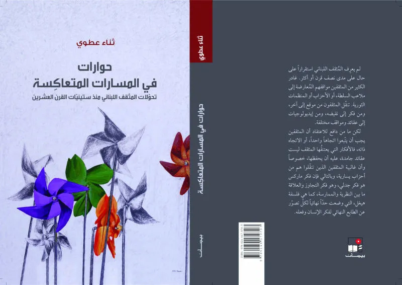 للكاتبة اللبنانية ثناء عطوي صدر كتاب «حوارات في المسارات المتعاكسة» عن دار «بيسان» النشر. وتضمن الكتاب حوارات مع حازم صاغية، وروجيه عساف، وفواز طرابلسي، ود. دلال البزري، وعباس بيضون، والسيد هاني فحص، والفضل شلق، وتوفيق هندي، ومحمد عبد الحميد بيضون.