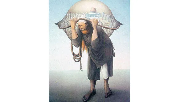 يحاور الفنان التشكيلي الفلسطيني الشاب بشار خلف، في معرضه «ظل الظل»، عددا من اللوحات المميزة للفنان سليمان منصور الذي له عدد من اللوحات الشهيرة ومنها «جمل المحامل».