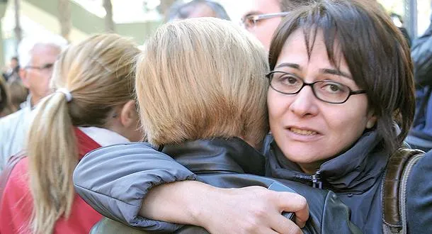 أفراد عائلات الضباط المتهمين بالتآمر يتجمعون أمام محكمة الاستئناف في أنقرة أمس (أ.ب)