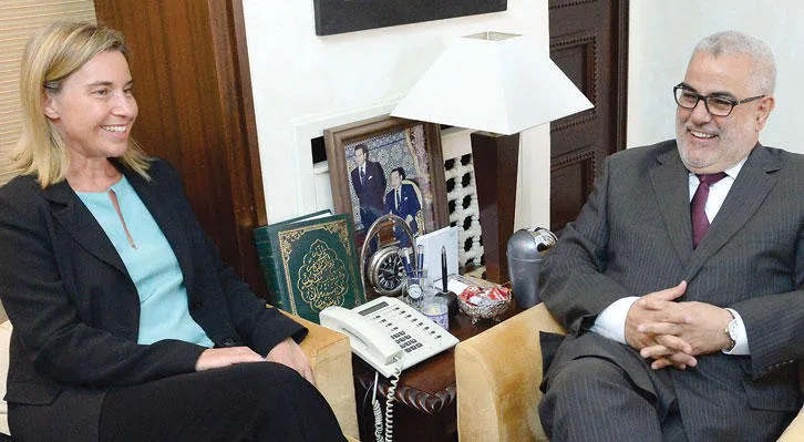 عبد الإله ابن كيران رئيس الحكومة المغربية في اجتماع سابق مع فيدريكا موغيريني المسؤولة بالاتحاد الأوروبي(أ.ف.ب)