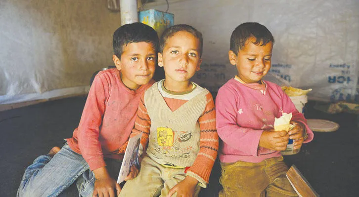 مجموعة أطفال في مخيم للسوريين في لبنان