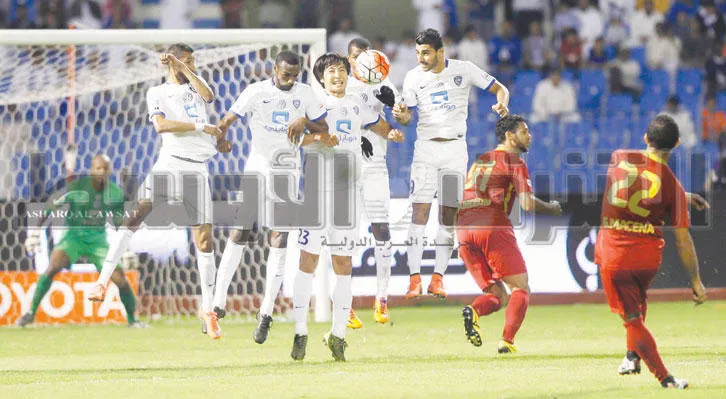 حائط الصد الهلالي يتصدى لإحدى كرات القادسية (تصوير: عيسى الدبيسي)