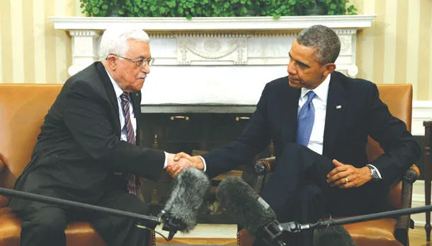 الرئيسان الأميركي باراك أوباما والفلسطيني محمود عباس لدى لقائهما في البيت الأبيض أمس (رويترز)