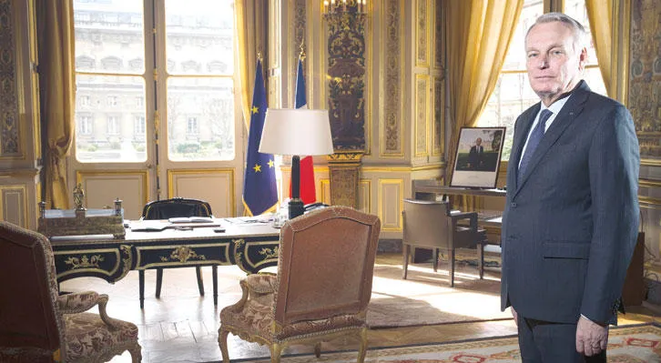 وزير الخارجية الفرنسي جان مارك آيرولت في مكتبه بباريس أمس (أ.ف.ب)
