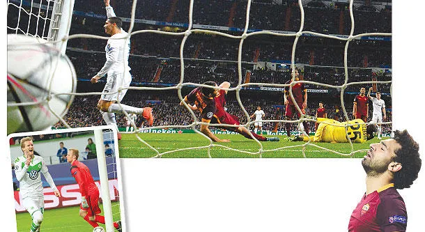 ودع روما دوري أبطال أوروبا وهو يشعر بمرارة إهدار فرصة ذهبية لتحقيق مفاجأة مدوية أمام ريال مدريد في استاد بيرنابيو، وبدلا من تعويض تأخره 2 - صفر في مباراة الذهاب خرج مهزوما بهدفين جديدين في إياب دور الـ16. فيما حقق فولفسبورغ الألماني إنجازا تاريخيا ببلوغه ربع نهائي المسابقة للمرة الأولى في تاريخه بفوزه على ضيفه غنت البلجيكي 1 - صفر.