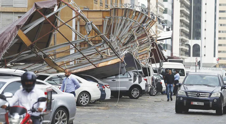 جانب من الأضرار الناجمة عن الاضطرابات الجوية في أبوظبي أمس (رويترز)