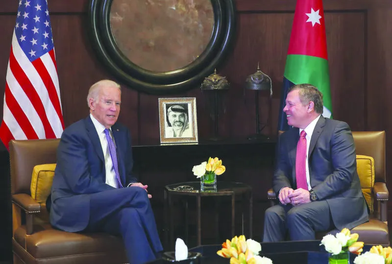 تناولت المباحثات التي أجراها نائب الرئيس الأميركي، جو بايدن، أمس، مع العاهل الأردني الملك عبد الله الثاني، آخر التطورات على الملف السوري، بما في ذلك، الهدنة الحالية بين نظام الأسد والمعارضة، وجهود مكافحة الإرهاب، وتحديدا ما يتعلق بتنظيم داعش الإرهابي، إضافة إلى جهود التحالف الدولي الذي تقوده الولايات المتحدة الأميركية في هذا الشأن.