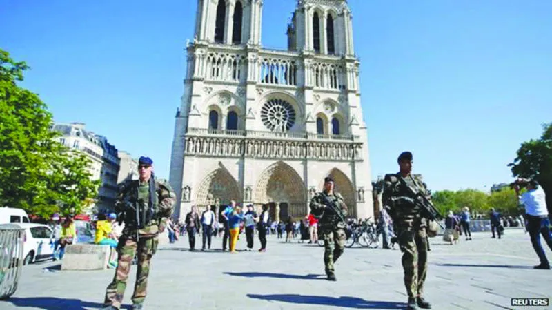 انتشار أمني في وسط العاصمة الفرنسية باريس عقب الهجمات الإرهابية التي ضربت المدينة نوفمبر 2015 («الشرق الأوسط»)