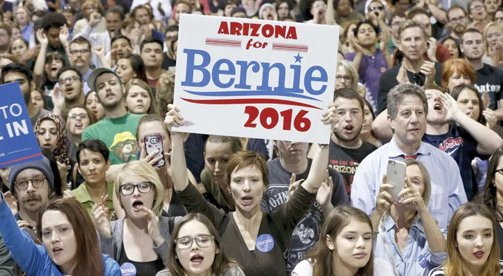 ناخبون أميركيون يؤيدون المرشح الديمقراطي المحتمل بيرني ساندرز في فينيكس بولاية أريزونا أول من أمس (رويترز)
