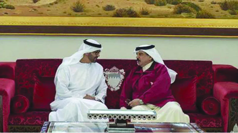 وجاء ذلك لدى استقبال ملك البحرين للشيخ محمد بن زايد آل نهيان والوفد المرافق، بحضور الأمير سلمان بن حمد آل خليفة ولي العهد نائب القائد الأعلى النائب الأول لرئيس مجلس الوزراء، أمس، في العاصمة البحرينية المنامة.