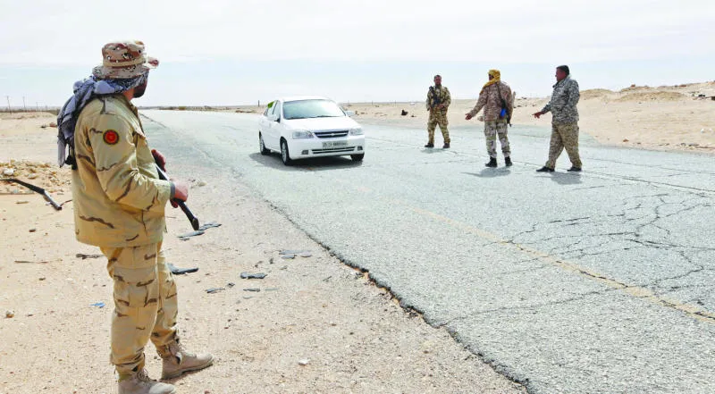 جنود ليبيون يقومون بدوريات للتفتيش في غرب مدينة سرت التي شهدت مواجهات مسلحة (رويترز)