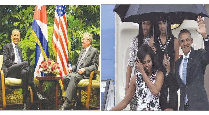 وكان المنظر من سيارة الـ«كاديلاك» المصفحة التي كان يستقلها أوباما مختلفا عن الصورة المعتادة للجزيرة بشمسها الساطعة ومياهها الزرقاء. وبدأت الأمطار الخفيفة الأولى التي تتساقط منذ أسابيع في الهطول بالتزامن مع هبوط طائرة الرئاسة، في مستهل الزيارة التاريخية التي أنهت عقودا طويلة من القطيعة بين البلدين.