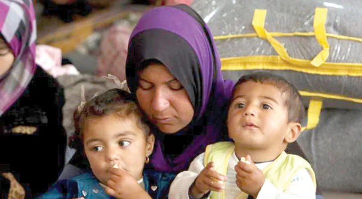 لاجئون في مخيم قرب الموصل بعد أن فر عشرات الآلاف من جرائم تنظيم «داعش» المتطرف (رويترز)
