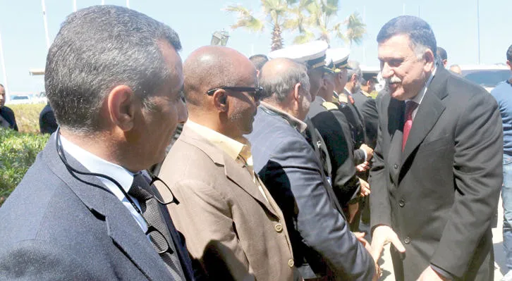 وقال المسؤول العسكري لوكالة الصحافة الفرنسية: «لقد وصل إلى القاعدة البحرية اليوم (أمس) السيد السراج برفقة عدد من أعضاء المجلس الرئاسي، وقد تناولوا هنا طعام الغداء، وعقدوا اجتماعا مع ضباط في القاعدة».