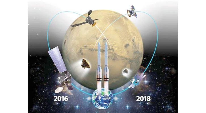 في غضون ذلك يواصل الإنسان بحثه عن آثار حياة على الكواكب ضمن المجموعة الشمسية، وبصورة رئيسية كوكب المريخ. وفي أول مهمة روسية أوروبية مشتركة لتحديد ما إذا كان هذا الكوكب مأهولا في وقت ما، حمل الصاروخ الروسي «بروتون إم» يوم الرابع عشر من مارس (آذار) المحطة «إكزو مارس» المدارية الكونية الأولى نحو مدار المريخ، حيث يتوقع أن تبلغه يوم السادس عشر من أكتوبر (تشرين الأول). وتتألف المحطة من عدة أقسام منها قمر صناعي سيبقى يجوب مدار المريخ وآخر سيدخل الغلاف الغازي للكوكب بغية دراسته بصورة أدق، ومراقبة الانبعاثات الغازية منه، وآخر سيقوم بمهمة إنزال على الكوكب ودراسة سطحه. وكل هذا على أمل إثبات أن حياة كانت يوما ما على المريخ، أو أنه قابل للحياة عليه ذات يوم إن اضطر الإنسان لاستيطان كواكب أخرى.