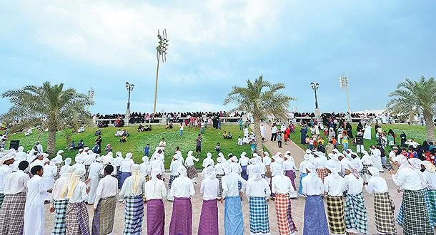 يتطلع الزوار إلى العروض الفلكلورية التي تنظمها الفرق الشعبية في مختلف المناطق السعودية («الشرق الأوسط»)