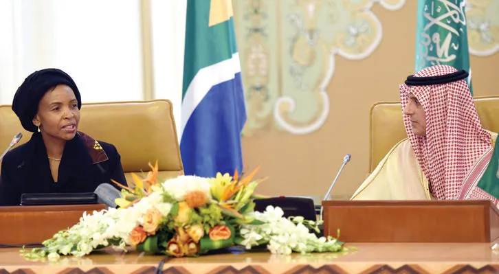 وزير الخارجية السعودي خلال جولة لعدد من الدول الأفريقية وفي الصورة مع وزيرة الخارجية في جنوب أفريقيا (أ.ف.ب)