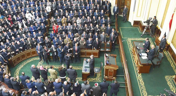 الرئيس المصري أثناء القائه كلمة في البرلمان المصري الجديد في فبراير الماضي
