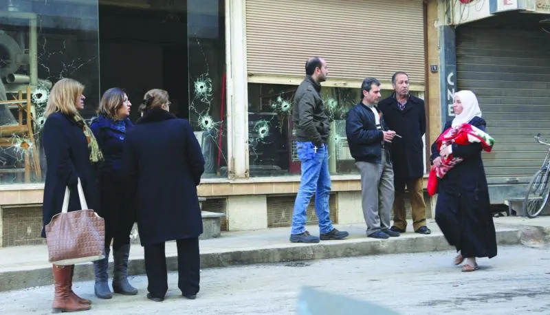 سوريون في حي بمدينة القامشلي شمال شرقي سوريا حيث اندلع قتال بين قوات كردية وسريانية في المدينة التابعة لمحافظة الحسكة (أ.ف.ب)