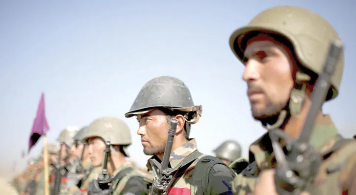 جنود أفغان خلال التدريبات في الأكاديمية العسكرية في العاصمة كابل أمس (رويترز)