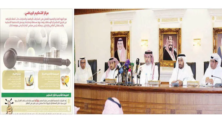 جانب من المؤتمر الصحافي الذي عقده الأمير عبد الله بن مساعد.. لإعلان انتهاء أعمال مركز التحكيم الرياضي السعودي (المركز الإعلامي لرعاية الشباب) - صورة ضوئية لطبيعة عمل مركز التحكيم الرياضي السعودي الجديد (المركز الإعلامي لرعاية الشباب)
