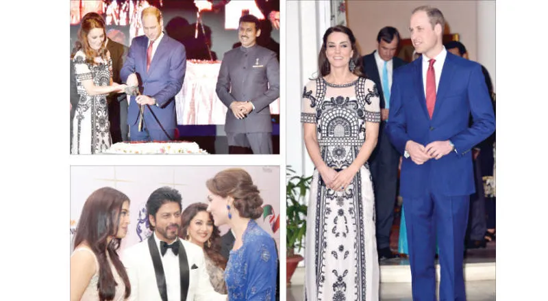 دوق ودوقة كامبردج يحضران احتفالا بعيد ملكة بريطانيا التسعين في نيودلهي و الدوق والدوقة خلال الاحتفال بعيد الملكة التسعين بحضور وزير الإعلام الهندي و دوقة كامبردج كيت تلتقي بممثل بوليوود شاروخان والممثلة اشواريا راي في فندق التاج في مومباي (إ.ب.أ)