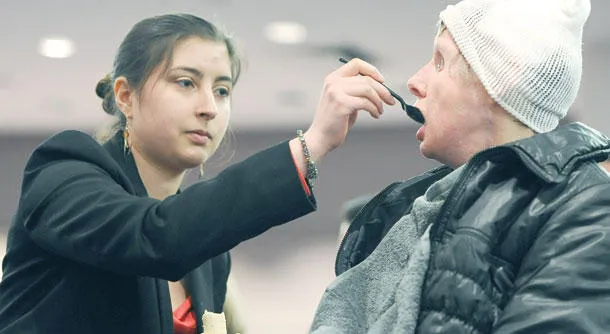 تشارلا ناش تتناول غذاءها بمساعدة ابنتها (أ.ب)