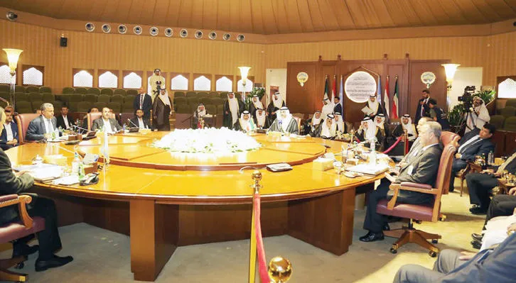 صورة نشرتها وكالة الأنباء الكويتية {كونا} لجلسة انطلاق المفاوضات بين الحكومة اليمنية والمتمردين التي احتضنتها الكويت أمس