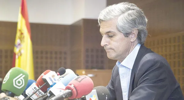 أدولفو سواريث الابن يتكلم في مؤتمر صحافي حول حالة والده الصحية الذي قد يتوفى خلال أيام (إ.ب.أ)
